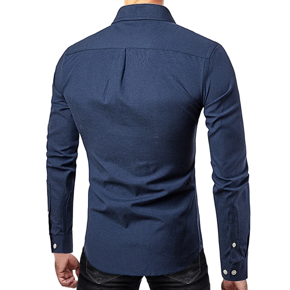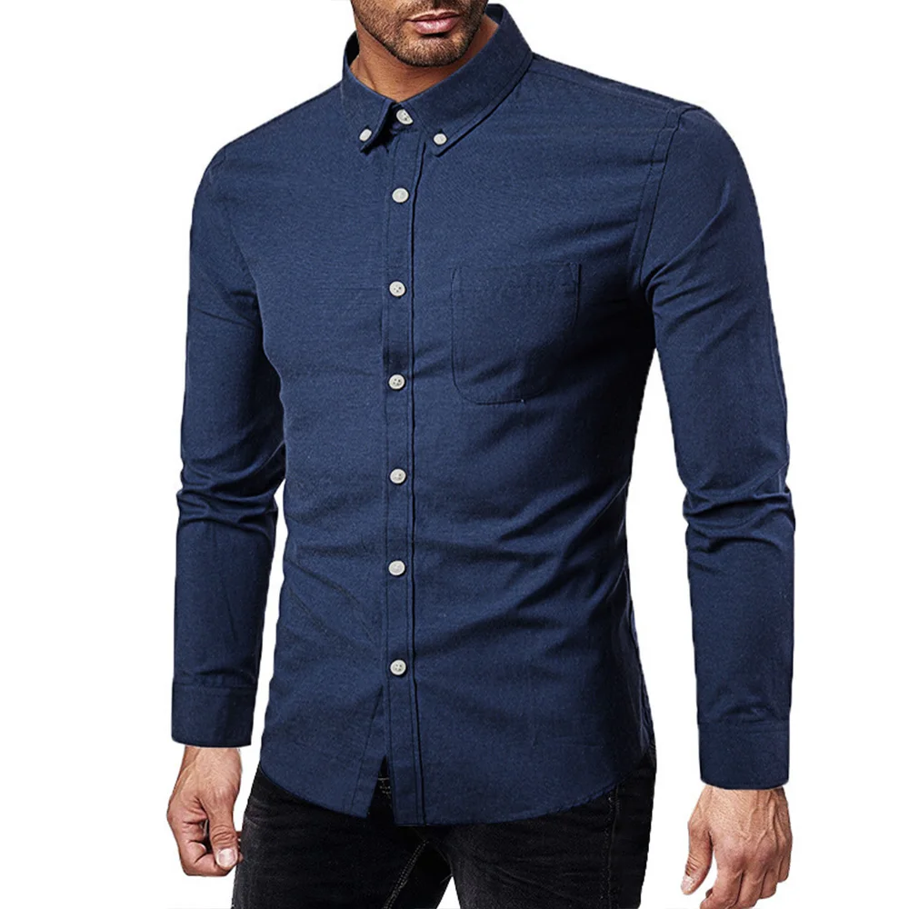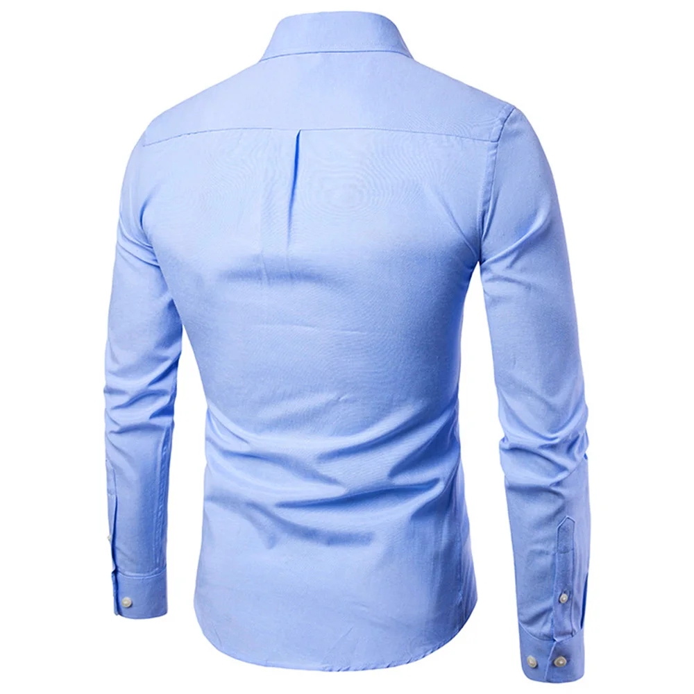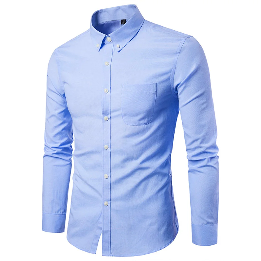 Oxford Shirts for Men Slim Fit Casual Long-sleeved Men Dress Shirt Lapel Button Collar White Black Shirts