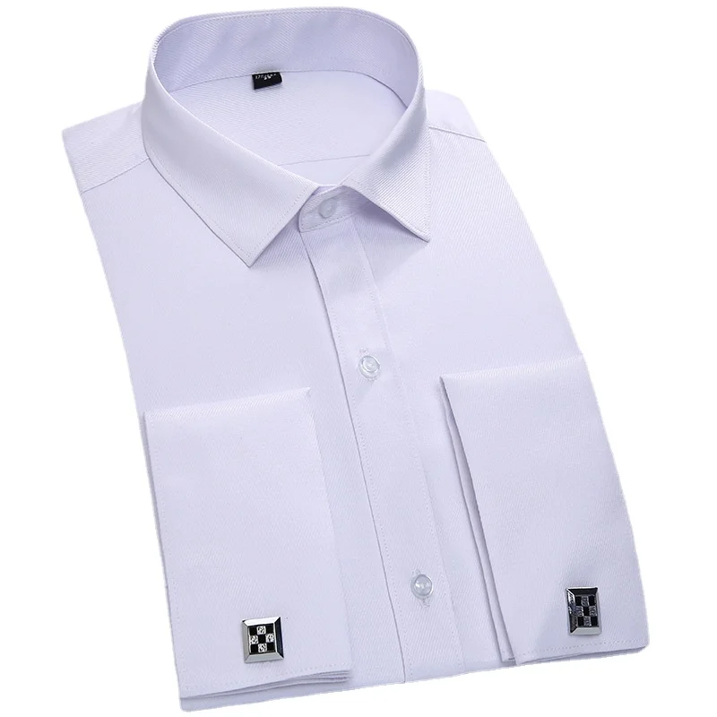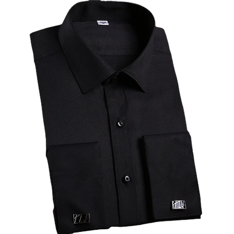 Quality Men’s Dress Shirts French Cuff Long Sleeved Business Casual Slim Fit Solid Color French Cufflinks Shirts Tuxedo Shirt