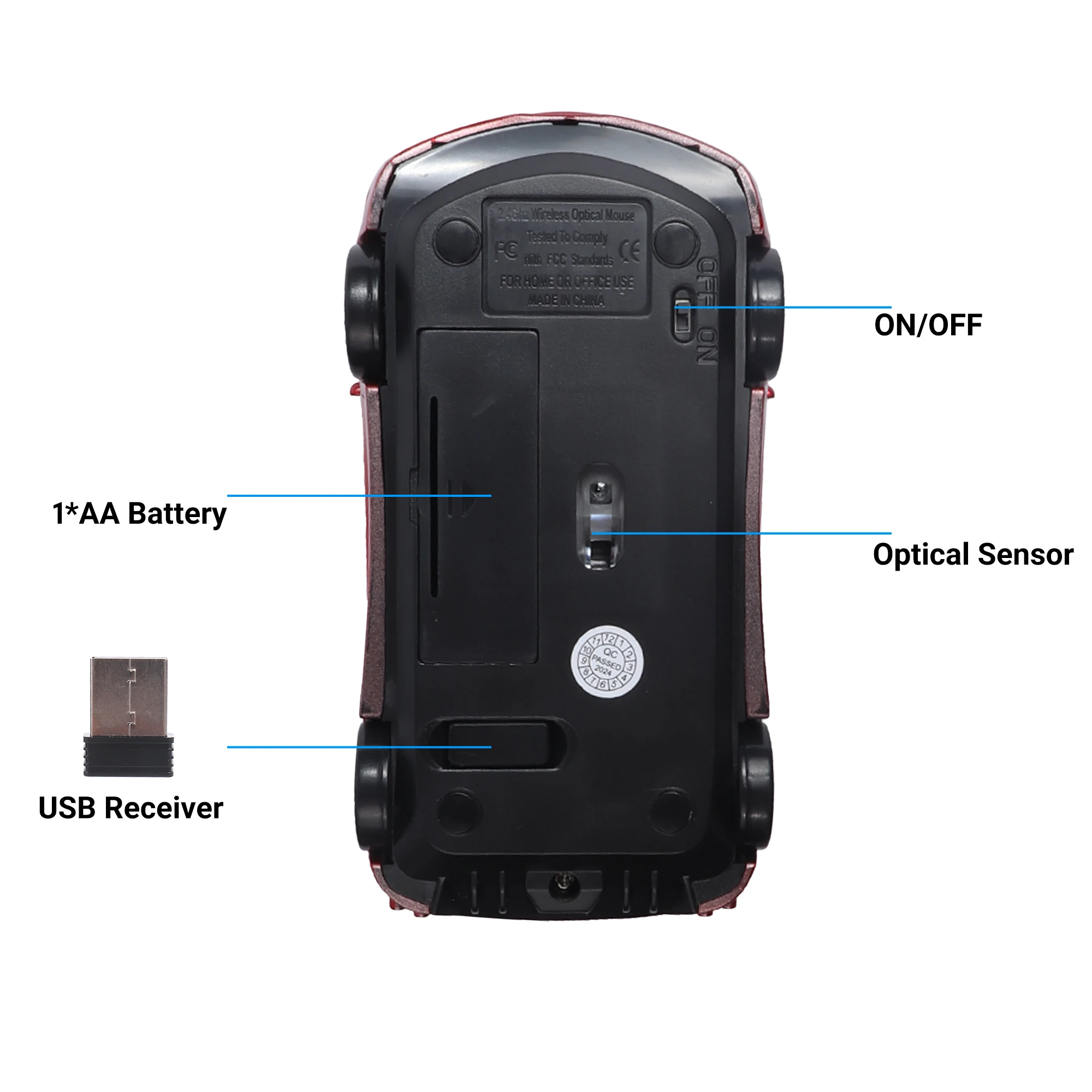 Wireless 2.4G Mouse Supercar Appearance Light Weight Mause Portable Energy Saving Windows MacOS Compatiple Office Use Gift Kids